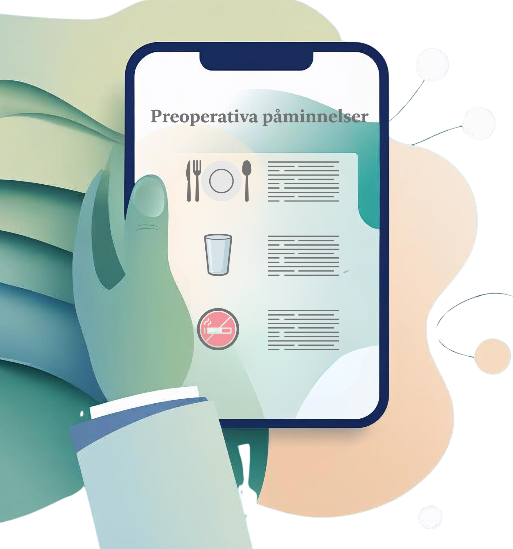 – till exempel fasta och dryck, narkos/bedövning, smärta, illamående, återhämtning, sår och förband.